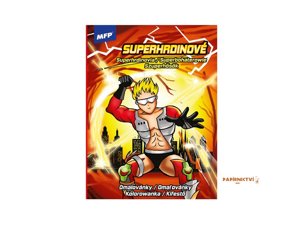 Dětské omalovánky MFP- Superhrdinové. Omalovánky jsou ve formátu A4, obsahují celkem 32 obrázků na vybarvení. Obrázky jsou natisklé na 80g papíře, desky omalovánek jsou na 280g papíře s laminem.Formát: A4