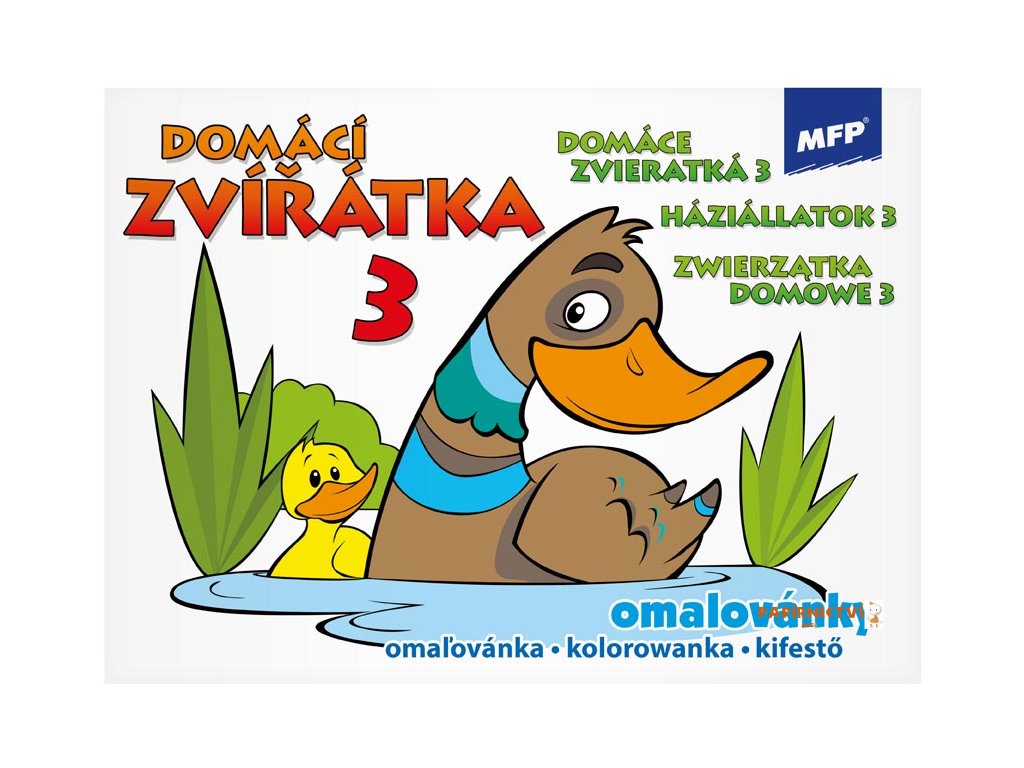 Dětské omalovánky MFP - domácí zvířátka - Udělejte si pohodové odpoledne s dětmi a vybarvěte si obrázek. Tyto omalovánky jsou jednoduché s velkými obrázky, tudíž vhodné i pro ty nejmenší děti. Děti se naučí poznávat jednoduché domácí zvířátka a navíc se zabaví. Vybarvování obrázků pomůže rozvíjet řadu schopností a dovedností, zejména má velký vliv na jemnou motoriku ruky. Zakoupit si u náš můžete i kvalitní barevné pastelky.
