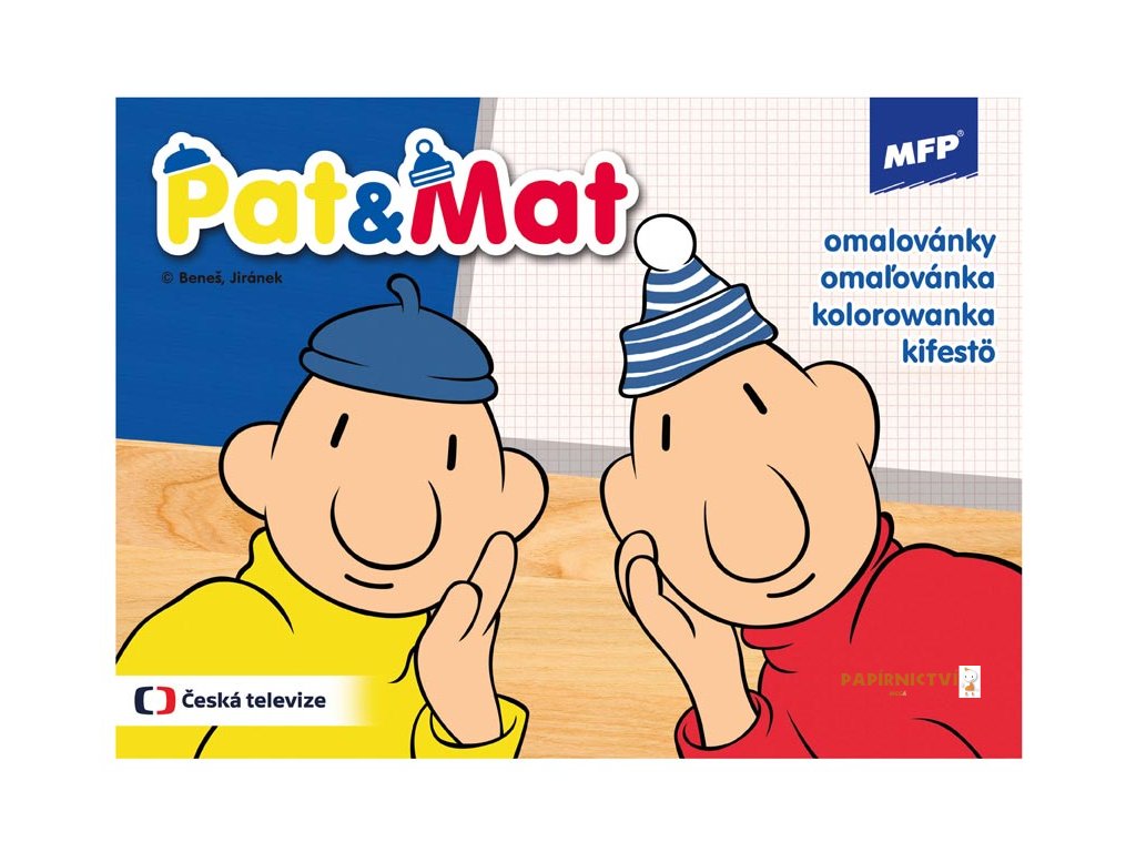 Dětské omalovánky MFP - Pat a Mat - Najdete zde 8 obrázků, na kterých jsou naši kutilové zachyceni se svými mistrovskými díly. Udělejte si pohodové odpoledne s dětmi a vybarvěte si omalovánku. Vybarvování obrázků pomůže rozvíjet řadu schopností a dovedností, zejména má velký vliv na jemnou motoriku ruky. Nezapomeňte si koupit i pastelky a ořezávátko. Díky velikým obrázkům jsou tyto omalovánky vhodné i pro menší děti
