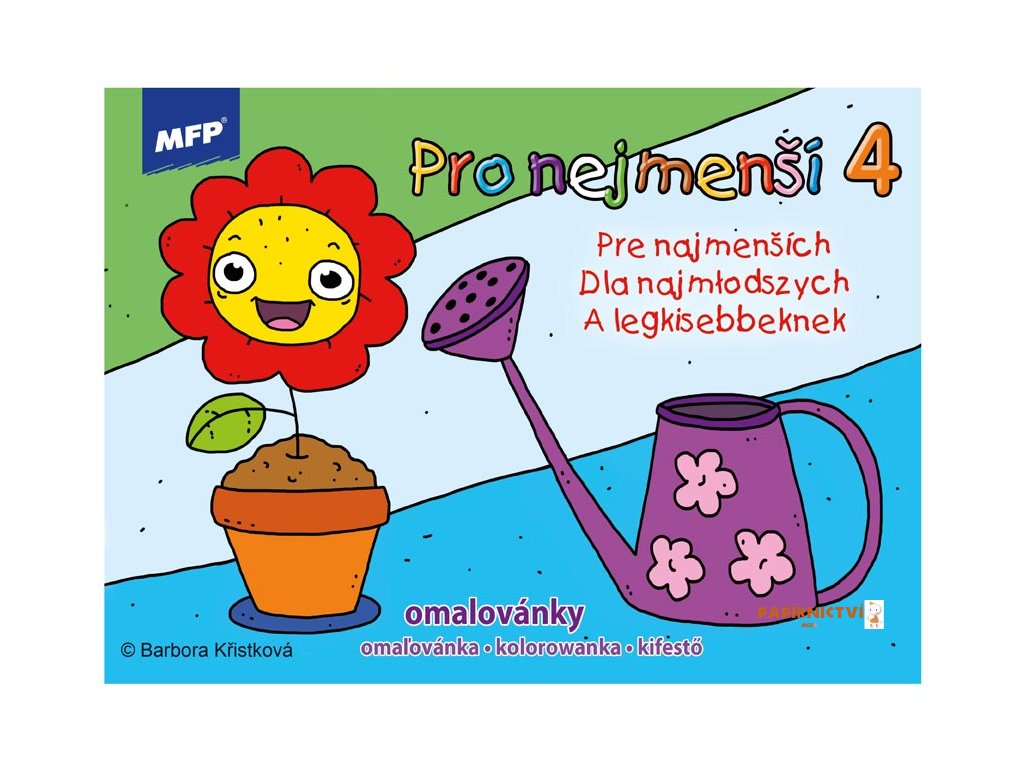 Dětské omalovánky MFP - Pro nejmenší 4 - Udělejte si pohodové odpoledne s dětmi a vybarvěte si obrázek. Tyto omalovánky jsou jednoduché s velkými obrázky, tudíž vhodné i pro ty nejmenší děti. Vybarvování obrázků pomůže rozvíjet řadu schopností a dovedností, zejména má velký vliv na jemnou motoriku ruky. Zakoupit si u náš můžete i kvalitní barevné pastelky.