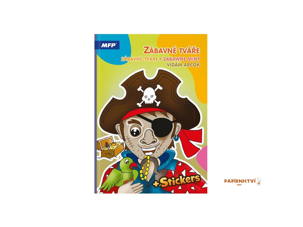 Omalovánky se samolepkami Zábavné tváře – úsměvy, grimasy a spousta legraceVeselé omalovánky se samolepkami Zábavné tváře od MFP otevírají veselý svět pirátů, klaunů, zvířat a dalších postaviček, které umí vykouzlit nejrůznější výrazy. Děti si je mohou vybarvit podle vlastní fantazie a díky samolepkám dotvořit zábavné obličeje i originální scény.