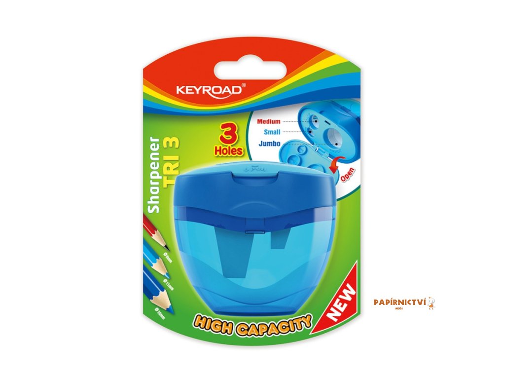 Ořezávátko KEYROAD TRI Plus, plast, blistr, modré A517-1