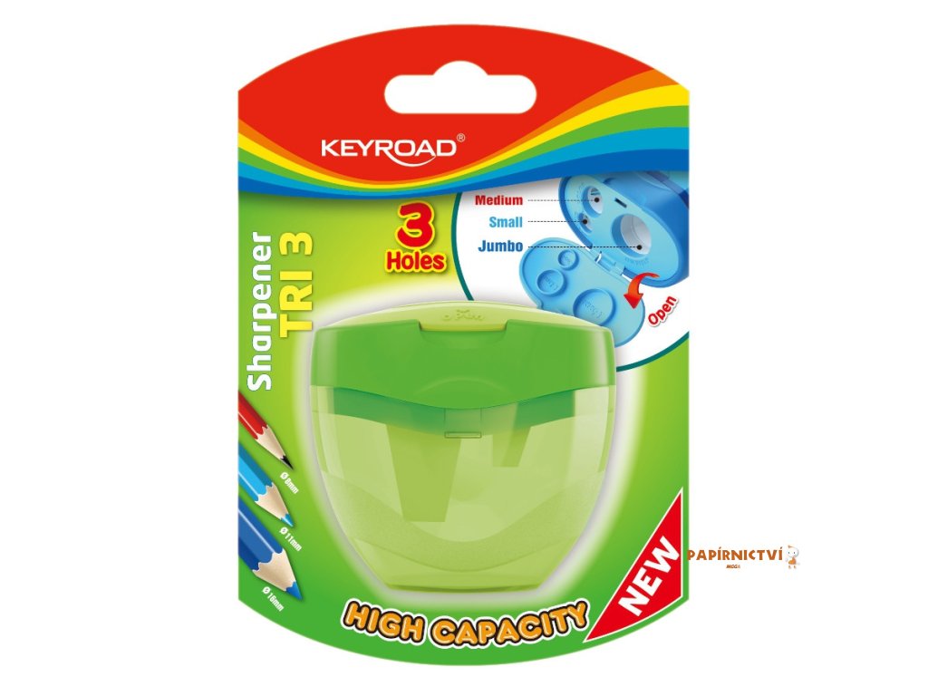 Ořezávátko KEYROAD TRI Plus, plast, blistr, zelené A517-2