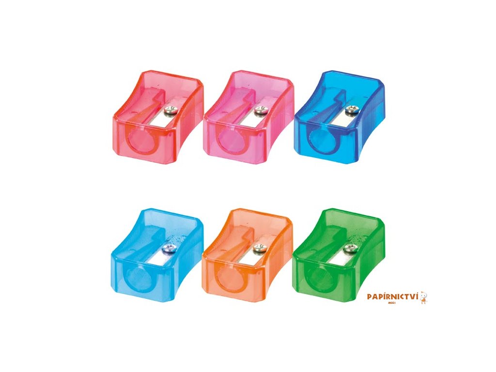 Plastové, školní ořezávátko/strouhátko bez zásobníku na odpad - ořezávátko patří do nezbytné výbavy každého školáka!Ořezávátko má 1 otvor. Břit je připevněný šroubkem, takže jde demontovat a nabrousit.