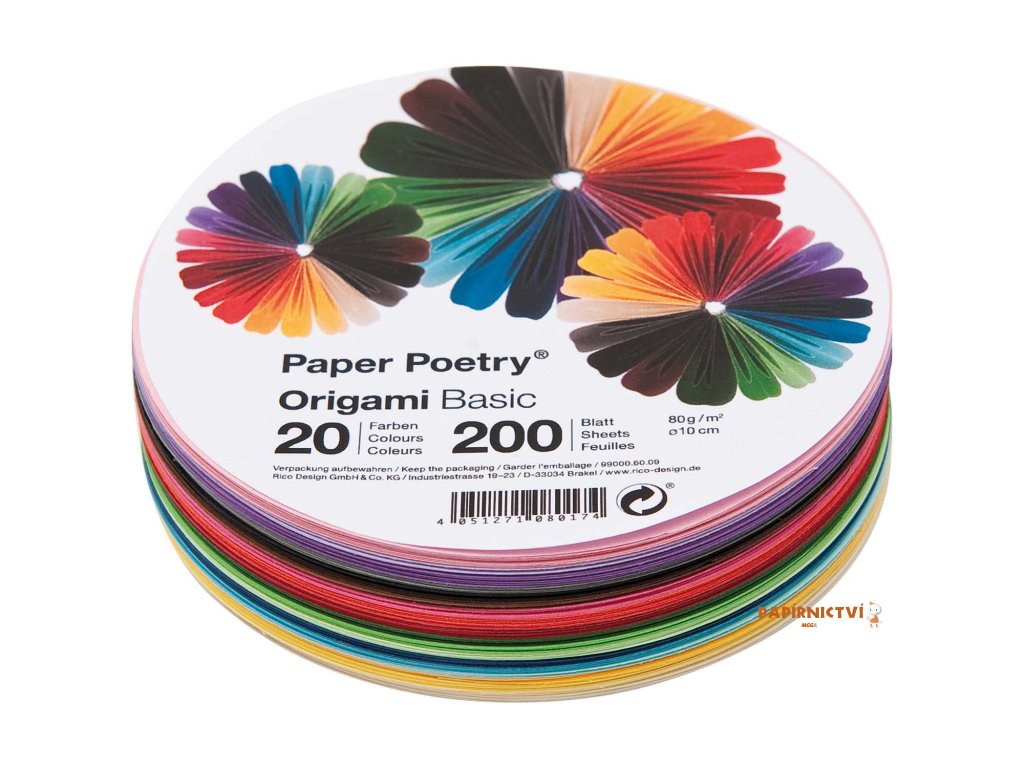 Origami basic, kruh 10cm, mix200ks,20 barev