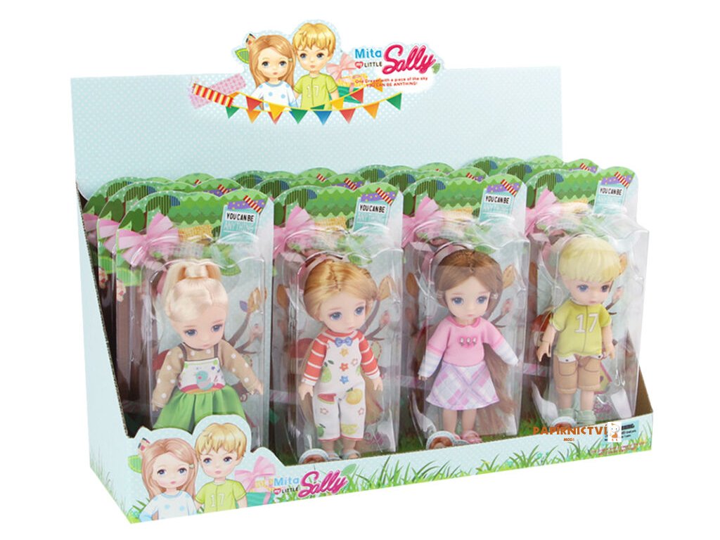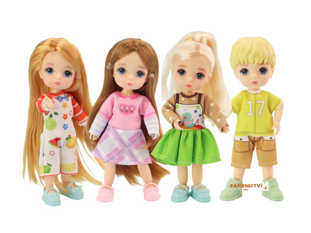 Panenka letní šaty. Velikost 12,5 cm. Pohyblivé klouby. 4 varianty - bílé, růžové, zelené, žluté - dle skladových zásob.