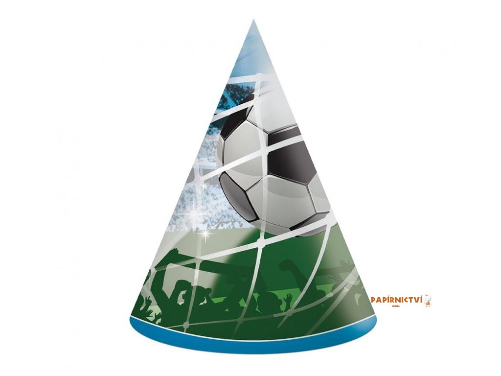 PAPÍROVÉ NAROZENINOVINOVÉ ČEPICE S FOTBALOVÝM MOTIVEM