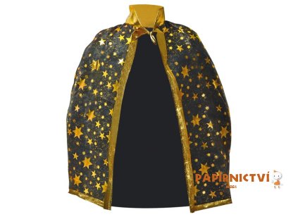 Čarodějnický plášť se zlatými hvězdami. Karnevalový plášť využijete ke kostýmu černokněžníka, kouzelníka. V černozlaté kombinaci barev budete nepřehlédnutelní. Je z lehké...