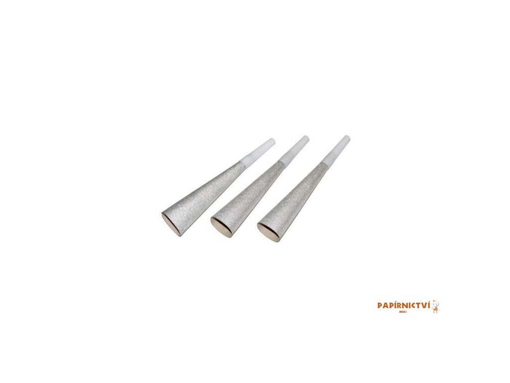 Párty trumpetka ve stříbrné barvě udělá na každé párty velkou parádu. Potěší všechny děti. V balení najdete 6 ks papírových trumpetek.