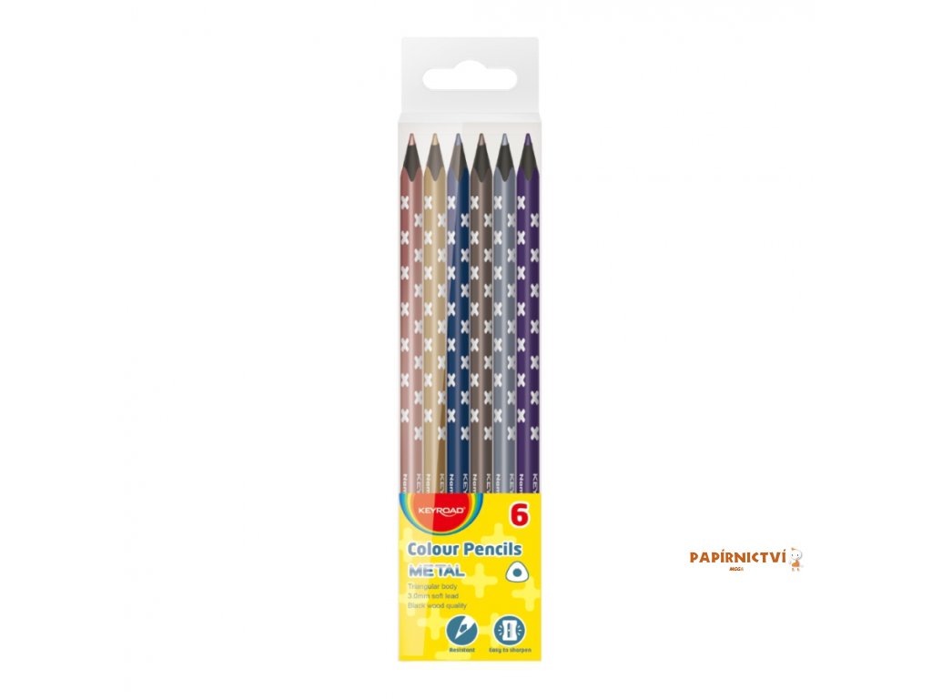 Pastelky KEYROAD Metal trojhranné 6ks A742