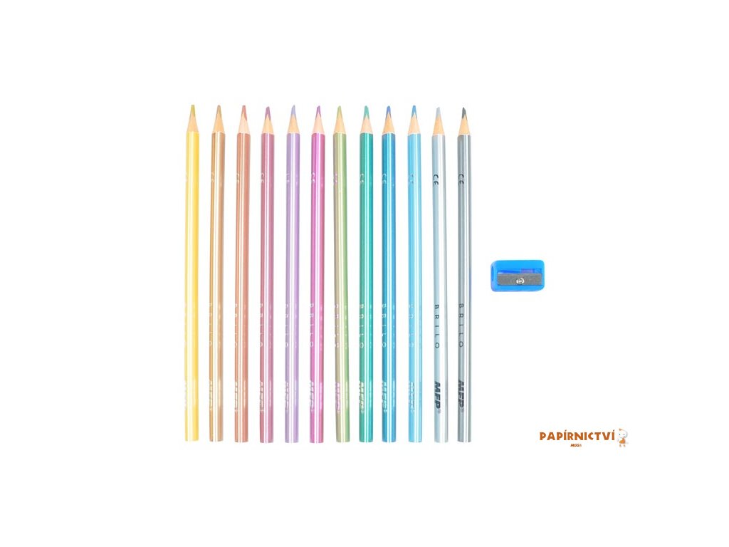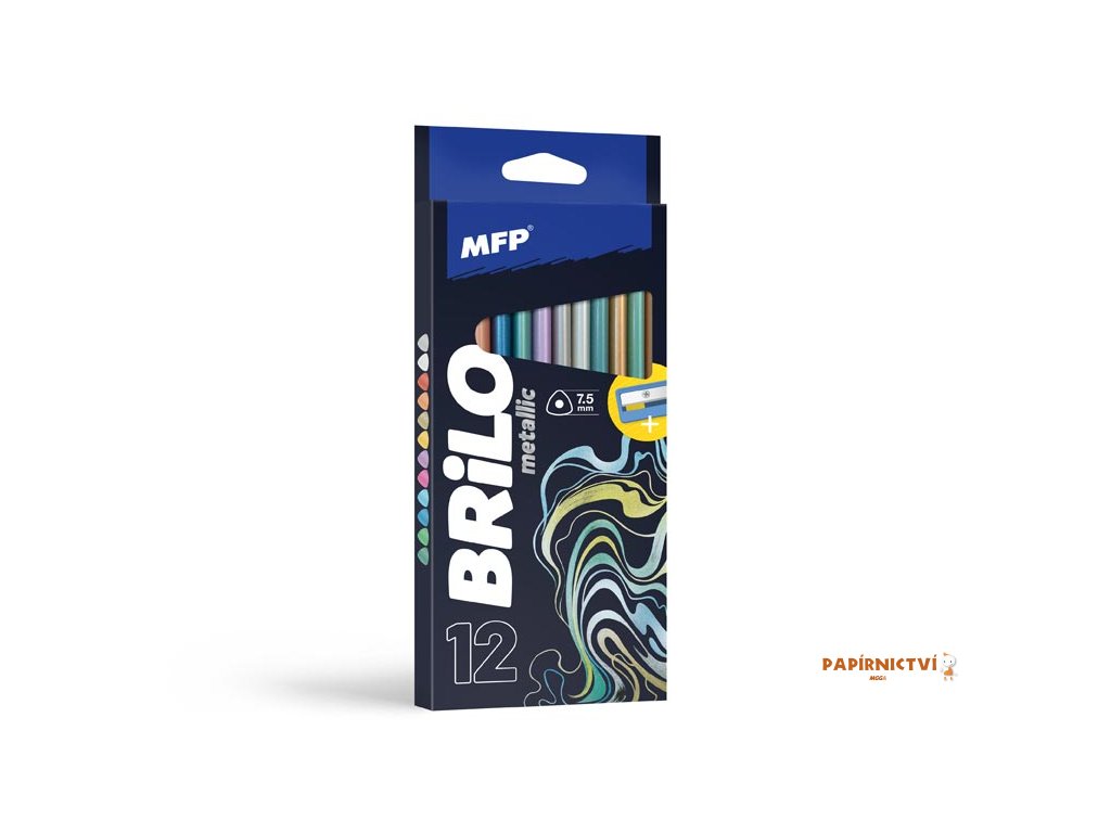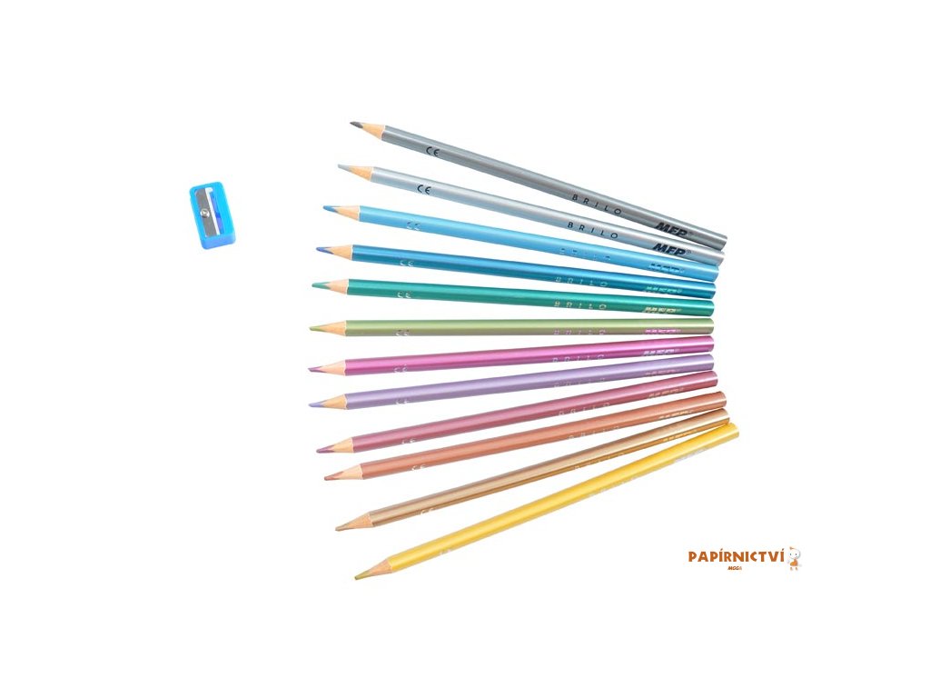 Pastelky MFP BRILO 12 ks Metalické triangular s ořezávátkem 6300625