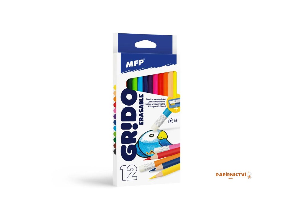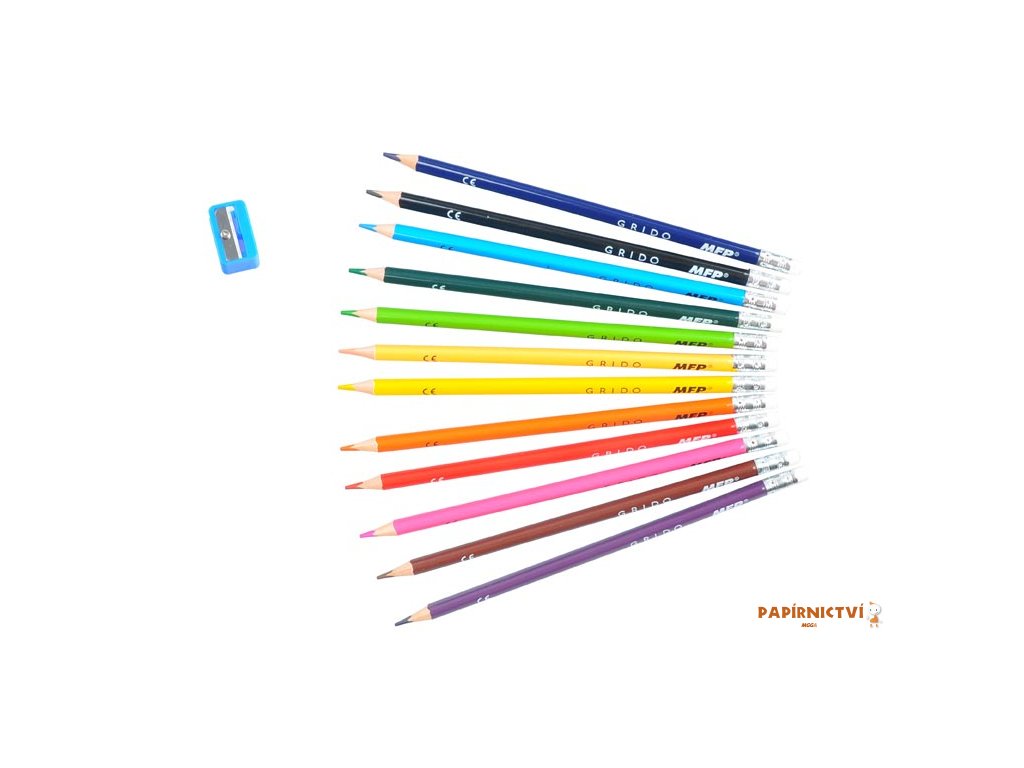 Pastelky MFP GRIDO 12 ks Gumovací triangular s ořezávátkem 6300587
