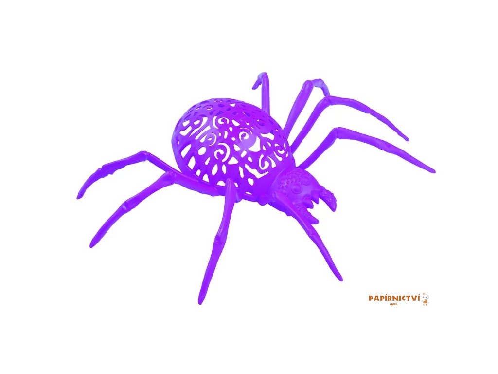 Karnevalový doplněk plastový pavouk v černé, oranžové, zelené nebo fialové barvě. Tato dekorace nesmí chybět na žádné halloweenské párty. Díky své velikosti budí pozornost a v mnohých vyvolává pocit strachu. Pavouk je vyrobený z plastu, díky tomu je vhodný jak do interiéru tak i exteriéru.Rozměr: 300 x 380 mm