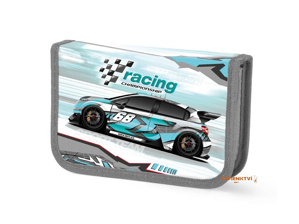 Jednopatrový školní penál s motivem závodního auta. Vevnitř penálu jsou přihrádky a poutka na psací potřeby. Penál se uzavírá zipem a je z kvalitních a odolných materiálů.Toto školní pouzdro není vybavené. Penál je zdravotně nezávadný a neobsahuje toxické látky.