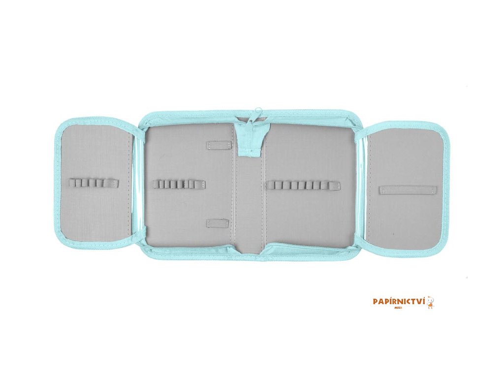 Uvnitř najdete dvě chlopně s průhlednými kapsami, kam lze snadno vložit rozvrh hodin nebo důležité poznámky. 23 elastických poutek udrží pastelky, tužky a pera bezpečně na svém místě, zatímco tři větší poutka jsou ideální pro nůžky, ořezávátko, gumu nebo malé pravítko. Tento penál není vybavený, ale díky promyšlenému uspořádání si ho můžete přizpůsobit přesně podle svých potřeb.