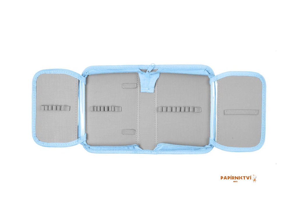 Uvnitř najdete dvě chlopně s průhlednými kapsami, ideální pro rozvrh hodin, poznámky nebo jiné důležité drobnosti, které chcete mít vždy na očích. Díky 23 elastickým poutkům budou pastelky, pera i fixy bezpečně uložené a přehledně uspořádané. Nechybí ani tři větší poutka, perfektní pro nůžky, gumu, ořezávátko nebo malé pravítko.