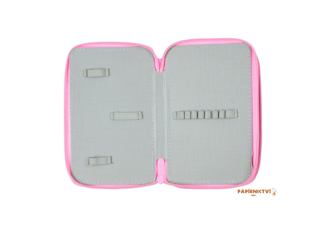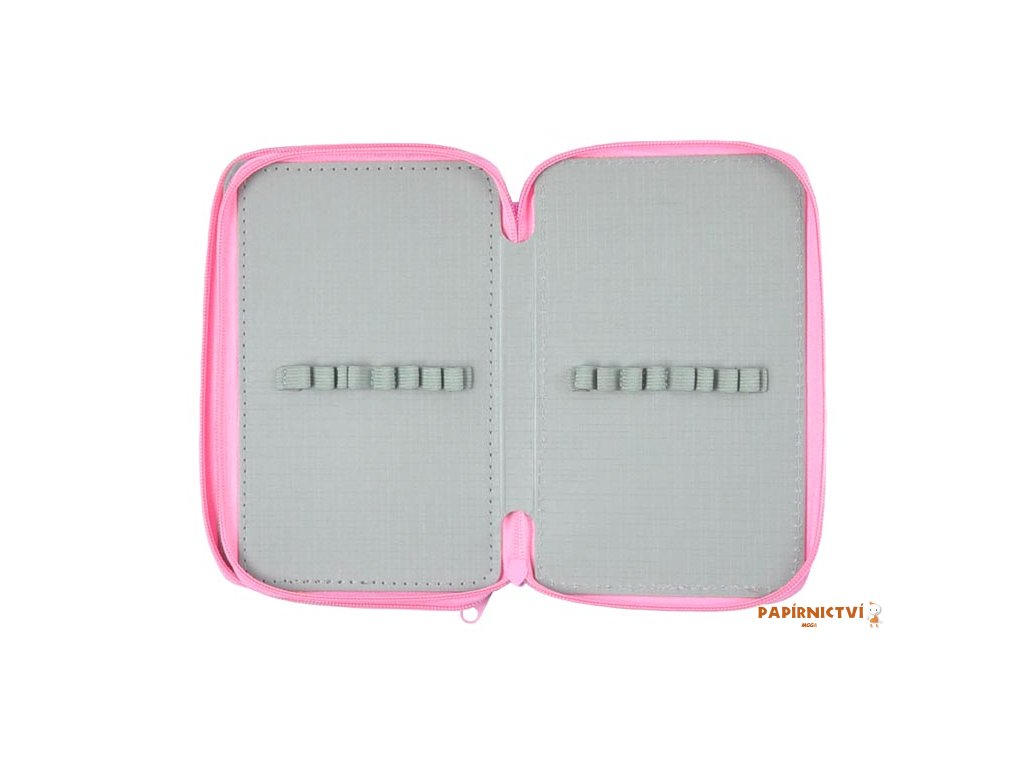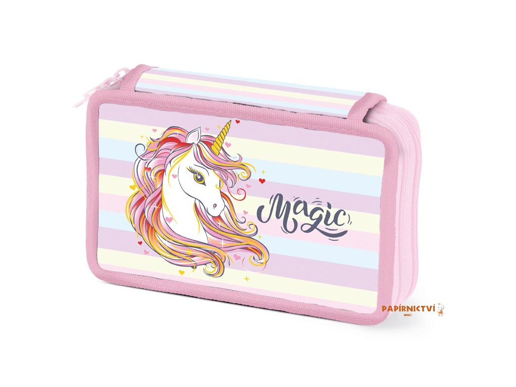 Školní dvoupatrový nevybavený penál s obrázkem jednorožce. Penál obsahuje 24 poutek na psací potřeby a 3 větší např. na pravítko, ořezávátko, gumu nebo nůžky. Uzavírá se pomocí zipu a je z kvalitních a odolných materiálů. Bezesporu je nezbytnou součástí vybavení každého školáka.- není vybavený