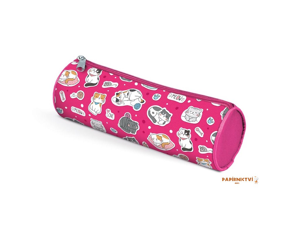 Školní penál/etue v sytě růžové barvě s motivem koček. Penál má jednu komoru s uzavíráním na zip. Uvnitř je dostatek prostoru na všechny psací potřeby, co školák potřebuje. Vhodný především na pastelky, fixy a další psací potřeby. Etue je vyrobena z kvalitních a odolných materiálů.- není vybavený
