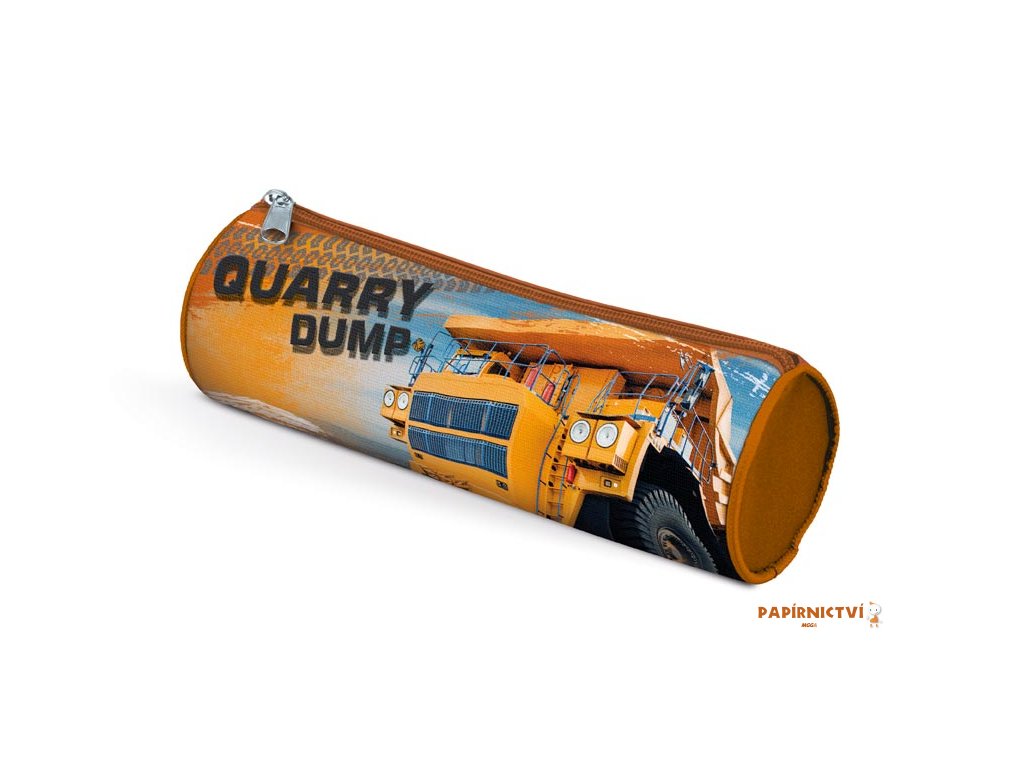 Školní penál/etue válcového tvaru má nápadný design s motivem velkého stavebního nákladního vozu. Na penálu je také nápis QUARRY DUMP v černé barvě. Penál disponuje jednou hlavní kapsou uzavíratelnou zipem a je ideální pro děti a fanoušky stavební techniky nebo vozidel. Je vhodný pro uschování psacích potřeb, jako jsou tužky, pera, fixy, a jiné drobnosti.- není vybavený