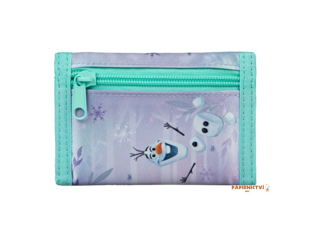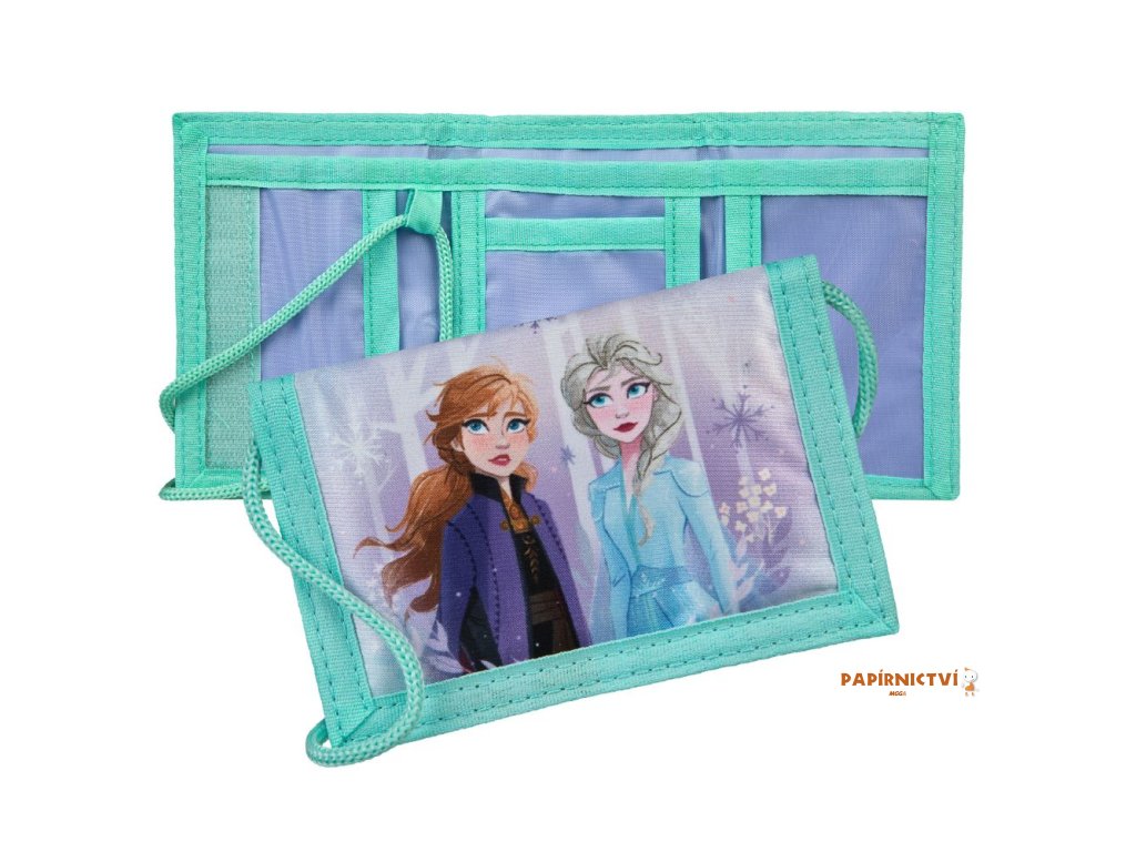 Praktická dětská peněženka s motivem oblíbené Ledového království. Vyrobená z odolného polyesteru, se zapínáním na suchý zip a šňůrkou na krk. Uvnitř přihrádky na bankovky i karty, kapsa s průhledným okénkem a na zadní straně kapsička na zip na drobné. Ideální pro malé výletníky i školáky.