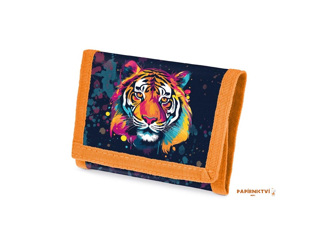 Stylová a praktická – taková je peněženka na krk, která se stane nepostradatelným doplňkem každého dobrodruha!Díky kovovému kroužku na klíče si snadno připnete to nejdůležitější, zatímco praktická šňůrka umožní pohodlné nošení. Barevný tygří motiv v kombinaci s kontrastním oranžovým lemováním dodává peněžence šmrnc, který si oblíbí děti i teenageři.