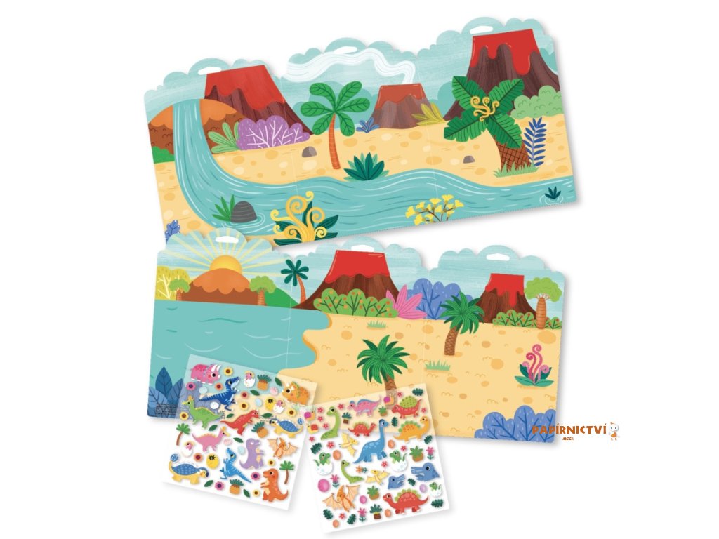 Pěnové samolepky pro opakované použití. Set krásných samolepek s motivem dino zvířátek. Samolepky drží na hladké ploše bez lepidla. Lze je tedy opakovaně používat a přelepovat na hrací ploše nebo na různá hladká místa. Děti rozvíjí jemnou motoriku a zároveň si užijí plno zábavy. Skvělá aktivita pro vytváření si vlastního zábavného světa. Balení obsahuje 102 pěnových samolepek pro opakované použití a oboustrannou rozkládací hrací plochu.