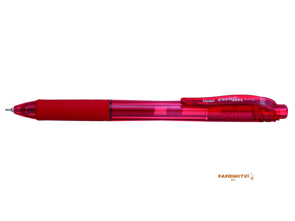 gelové pero v červeném provedení • vyměnitelná náplň • rychleschnoucí inkoust EnerGel X • mačkací mechanismus • vroubkovaný pogumovaný úchop • tenký jehlový hrot • průhledné plastové tělo • průměr kuličky hrotu 0,5mm • stopa 0,3mm |