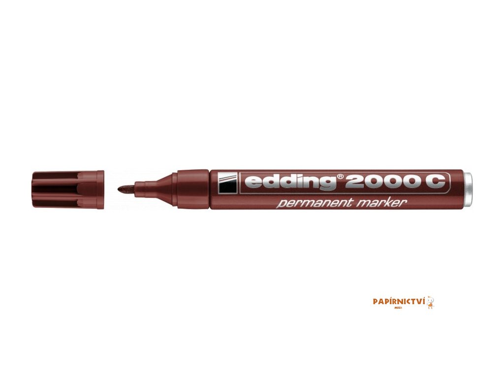 Permanentní popisovac Edding 2000 funguje dobre na papírovém povrchu, plastu, dreve, kovu, skle nebo kartonu. Odolává vode, teplu, opotrebení a rozmazání. Je rychleschnoucí s nízkým zápachem. Kulatý hrot má šírku stopy 1,5-3 mm. Fix je doplnitelný inkoustovými náplnemi: Edding T 25, Edding MTK 25. K dispozici jsou náhradní hroty (Edding 3000N).Doplňkové parametry
