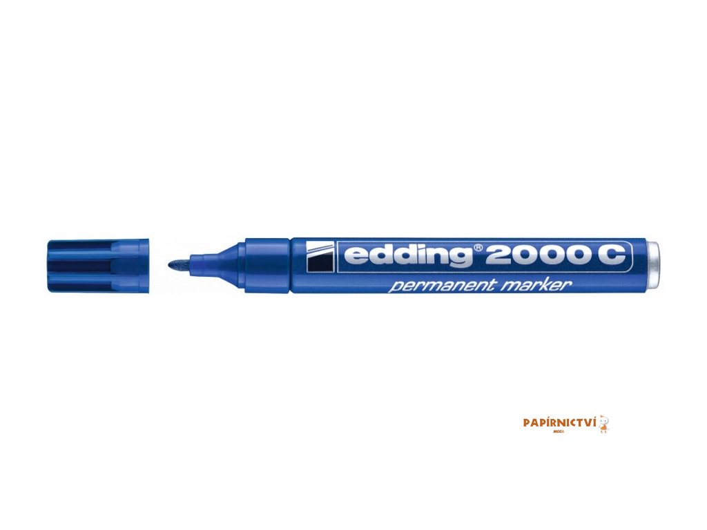 Permanentní popisovac Edding 2000 funguje dobre na papírovém povrchu, plastu, dreve, kovu, skle nebo kartonu. Odolává vode, teplu, opotrebení a rozmazání. Je rychleschnoucí s nízkým zápachem. Kulatý hrot má šírku stopy 1,5-3 mm. Fix je doplnitelný inkoustovými náplnemi: Edding T 25, Edding MTK 25. K dispozici jsou náhradní hroty (Edding 3000N).Doplňkové parametry