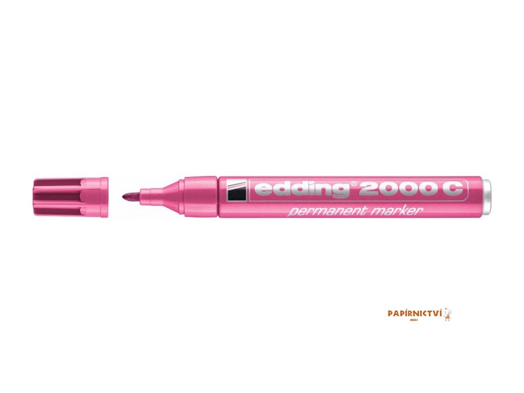 Permanentní popisovac Edding 2000 funguje dobre na papírovém povrchu, plastu, dreve, kovu, skle nebo kartonu. Odolává vode, teplu, opotrebení a rozmazání. Je rychleschnoucí s nízkým zápachem. Kulatý hrot má šírku stopy 1,5-3 mm. Fix je doplnitelný inkoustovými náplnemi: Edding T 25, Edding MTK 25. K dispozici jsou náhradní hroty (Edding 3000N).Doplňkové parametry