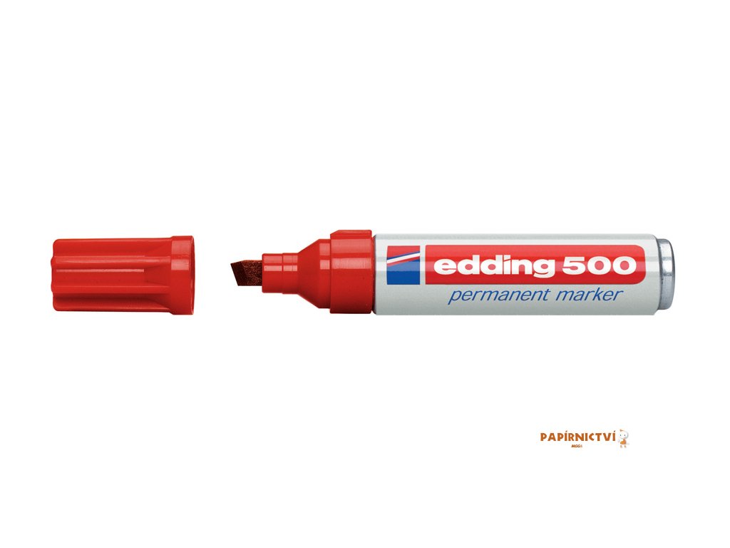 Vysoce kvalitní permanentní popisovac urcený k popisování a znacení témer všech materiálu, vcetne kovu, plastu a skla. Je vodeodolný a odolný proti oderu na témer každém povrchu. Obsahuje tuž bez prísady toluenu a xylenu.Permanentní popisovac Edding 500 se seríznutým hrotem obsahuje inkoust se slabým zápachem. Znovu naplnitelný. Zkosený hrot, šíre stopy: 2-7 mm.