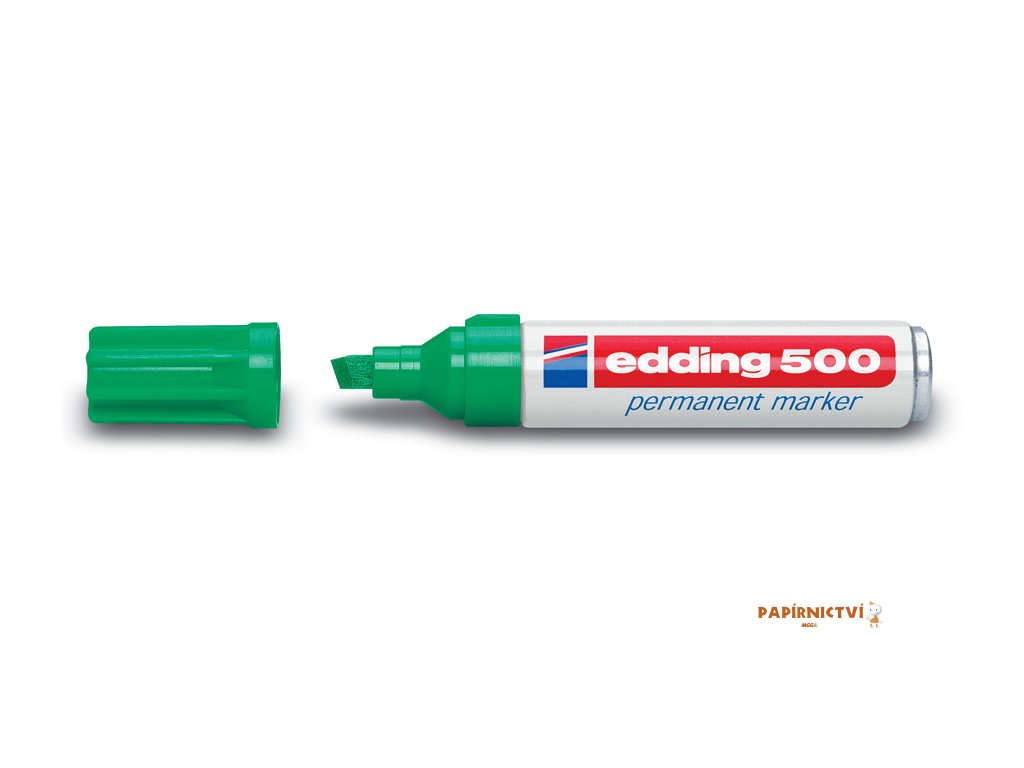 Vysoce kvalitní permanentní popisovac urcený k popisování a znacení témer všech materiálu, vcetne kovu, plastu a skla. Je vodeodolný a odolný proti oderu na témer každém povrchu. Obsahuje tuž bez prísady toluenu a xylenu.Permanentní popisovac Edding 500 se seríznutým hrotem obsahuje inkoust se slabým zápachem. Znovu naplnitelný. Zkosený hrot, šíre stopy: 2-7 mm.
