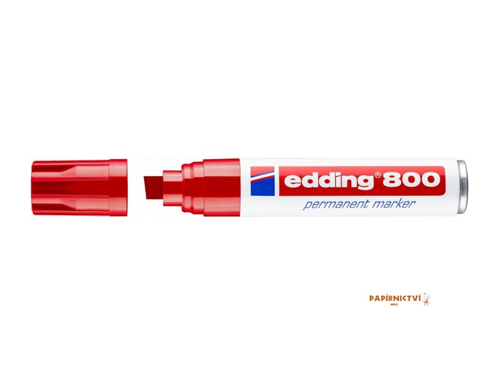 Permanentní popisovac vhodný pro výrazné a silné znacení na témer všechny materiály. Vhodný na kov, plast, sklo, karton, drevo nebo kuži. Má seríznutý hrot o šírce 4-12 mm. Je rychleschnoucí, odolný vuci vode a vysokým teplotám. Odolává opotrebení témer na kterémkoli povrchu. Výrobek je plnitelný doplnovacími inkousty EDDING T 25, T 100 a T 1000. K dispozici jsou vhodné náhradní hroty (EDDING 800 náhradních hrotu).Doplňkové parametry