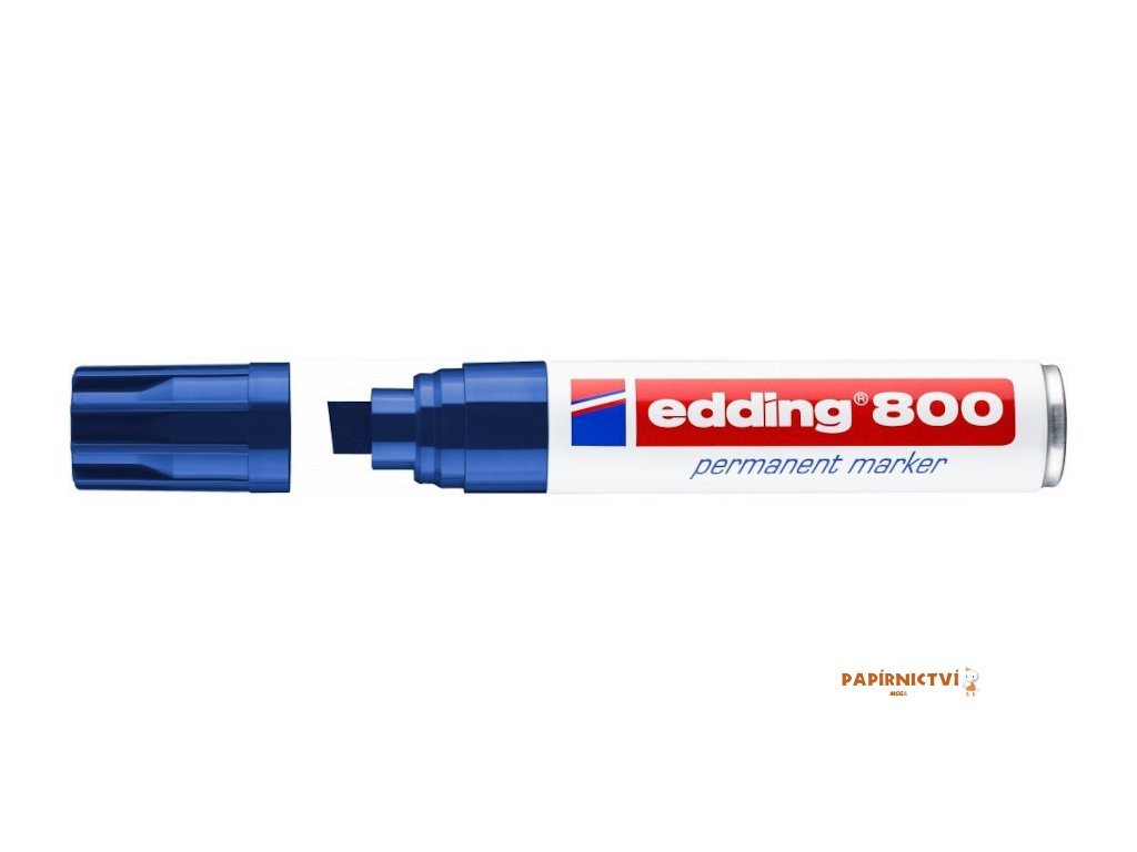 Permanentní popisovac vhodný pro výrazné a silné znacení na témer všechny materiály. Vhodný na kov, plast, sklo, karton, drevo nebo kuži. Má seríznutý hrot o šírce 4-12 mm. Je rychleschnoucí, odolný vuci vode a vysokým teplotám. Odolává opotrebení témer na kterémkoli povrchu. Výrobek je plnitelný doplnovacími inkousty EDDING T 25, T 100 a T 1000. K dispozici jsou vhodné náhradní hroty (EDDING 800 náhradních hrotu).Doplňkové parametry