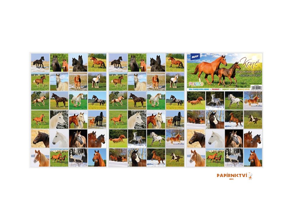 PEXESO je populární dětská stolní hra, která nikdy neomrzí a zapojit se můžou i dospělí. Pexeso - Koně - je vhodné pro milovnice a milovníky koní. Věděli jste, že slovo PEXESO vzniklo souslovím slov PEKELNĚ SE SOUSTŘEĎ? Výborná učební pomůcka pro děti a rodiče. Naučte své děti poznávat zvířata a procvičujte jejich paměť. Tato hra je zabaví na dlouhé hodiny.