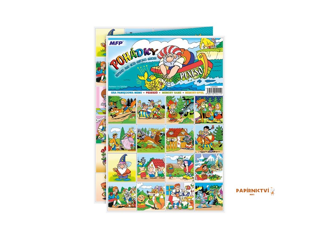PEXESO je populární dětská stolní hra, která nikdy neomrzí a zapojit se můžou i dospělí. Pexeso - Pohádky - nás zavede zpět k pohádkovým hrdinům z českých pohádek Hrnečku vař!, O šípkové Růžence, Kocour v botách, Čert a Káča a mnoho dalších. Věděli jste, že slovo PEXESO vzniklo souslovím slov PEKELNĚ SE SOUSTŘEĎ? Výborná učební pomůcka pro děti a rodiče. Naučte své děti poznávat zvířata a procvičujte jejich paměť. Tato hra je zabaví na dlouhé hodiny.