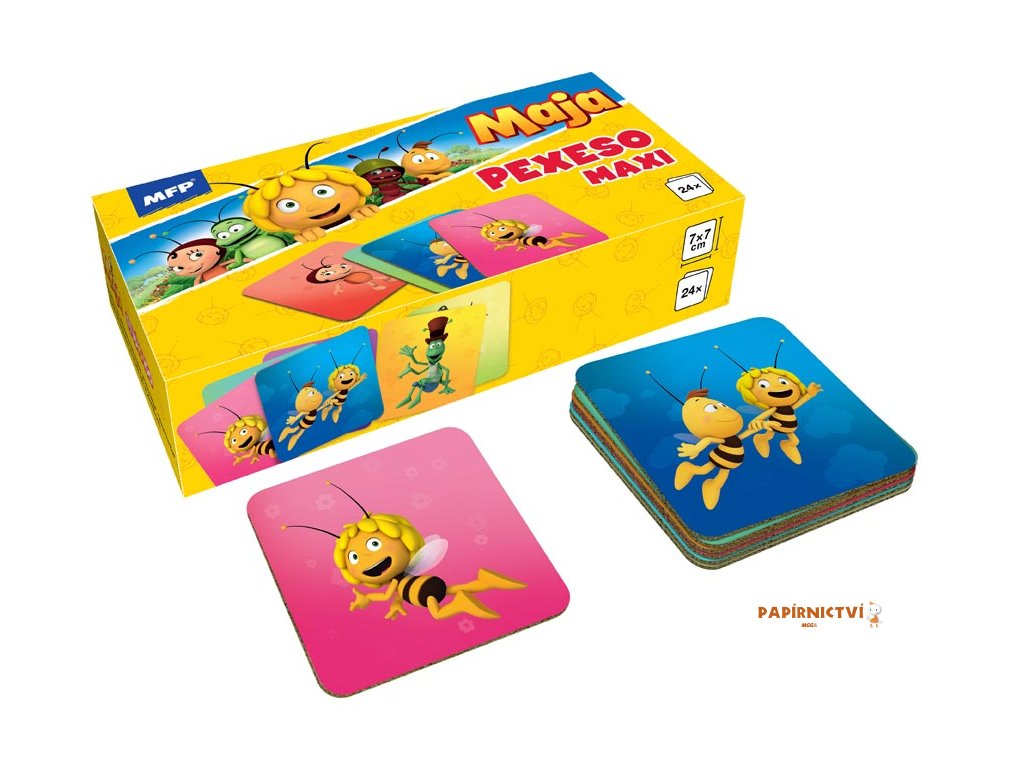 PEXESO MFP LUX s obrázky z oblíbené pohádky Včelka Mája. PEXESO je populární dětská stolní hra, která nikdy neomrzí a zapojit se můžou i dospělí. Věděli jste, že slovo PEXESO vzniklo souslovím slov PEKELNĚ SE SOUSTŘEĎ? Výborná učební pomůcka pro děti a rodiče. Naučte své děti poznávat oblíbené české večerníčky a procvičujte jejich paměť. Tato hra je zabaví na dlouhé hodiny.Pexeso se skládá z 2x12 vyseklých kartiček pexesa. Tloušťka kartonu je 3 mm, aby jej malé děti mohly lépe uchopit a otočit.
