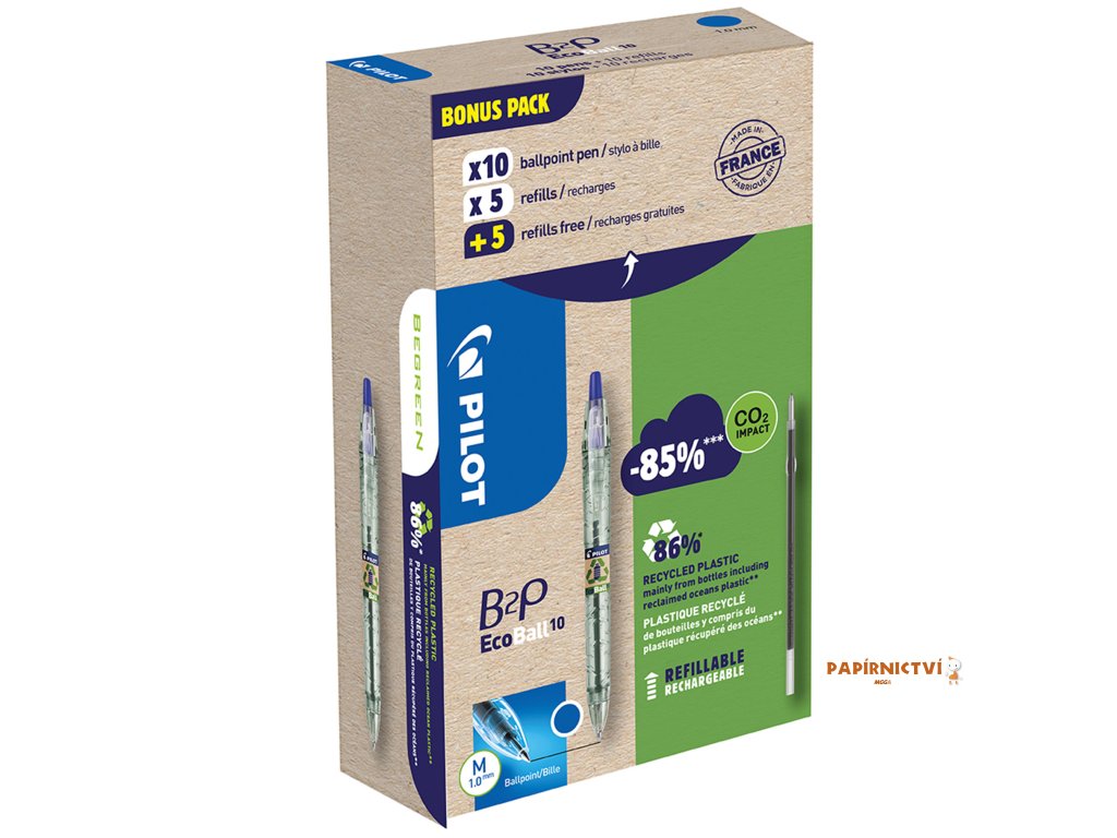 Pilot, Sada 10 ks Kuličkové pero a 10ks náplň B2P Ecoball Begreen, 1.0, modrá, b