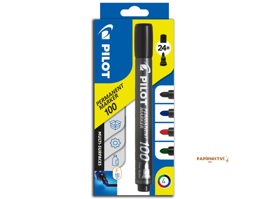 Pilot, Sada 4 ks Popisovač 100, 1.0, (F) tenký, mix barev