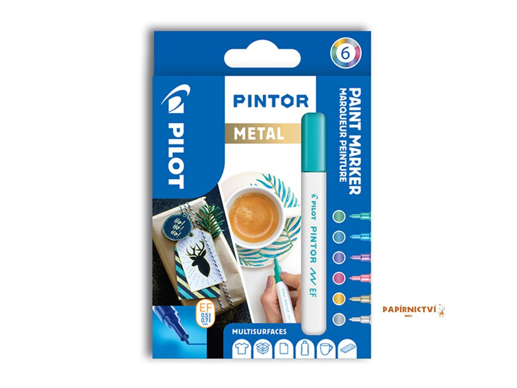 Pilot, Sada 6 ks Akrylový Popisovač Pintor, (EF) extra tenký, mix metalických ba
