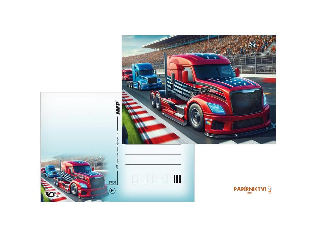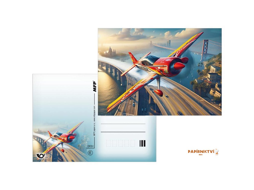 Pohlednice s motivy různých závodních prostředí (motorky, letadlo, formule…). Pohlednice jsou bez textu na zadní straně.