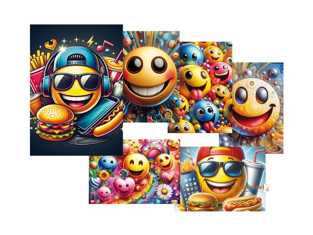 Pohlednice s motivem smajlíků. Pohlednice jsou bez textu na zadní straně.