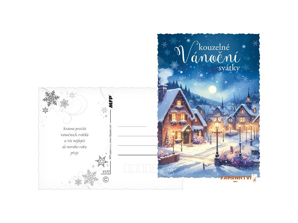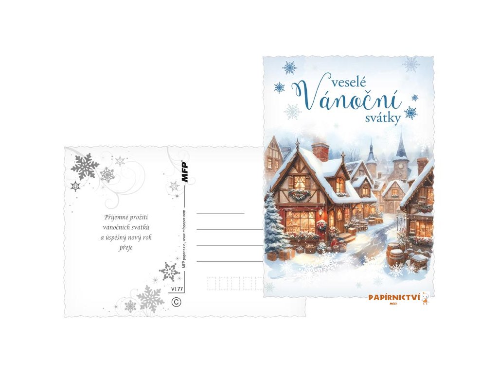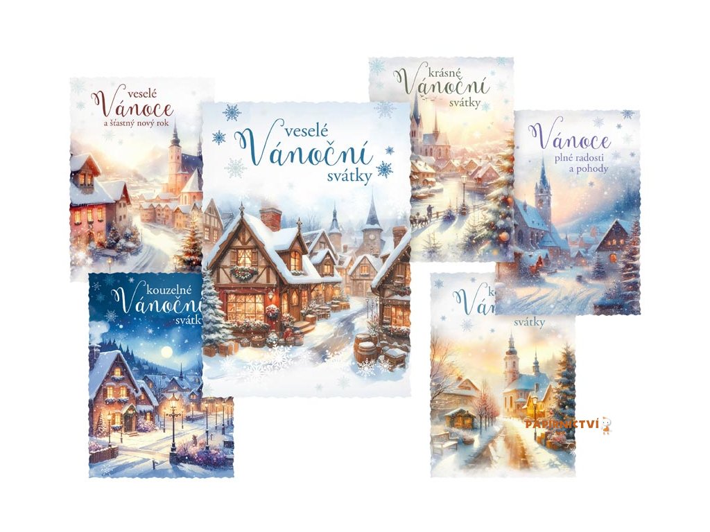 Pohlednice s vánočním motivem. Vánoční pohlednice jsou nejen praktickým způsobem, jak popřát Veselé Vánoce, ale také krásným a tradičním prvkem, který přináší radost a spojuje lidi během svátečního období. Vyberte si u nás z široké nabídky pohlednic s vánočními motivy, které potěší vaše blízké a zpříjemní vánoční čas. Naše pohlednice jsou ideální pro sdílení sváteční atmosféry, přání k Vánocům a vytváření krásných vzpomínek. Text na zadní straně obsahují 3 pohlednice z 6.Text na přední straně: