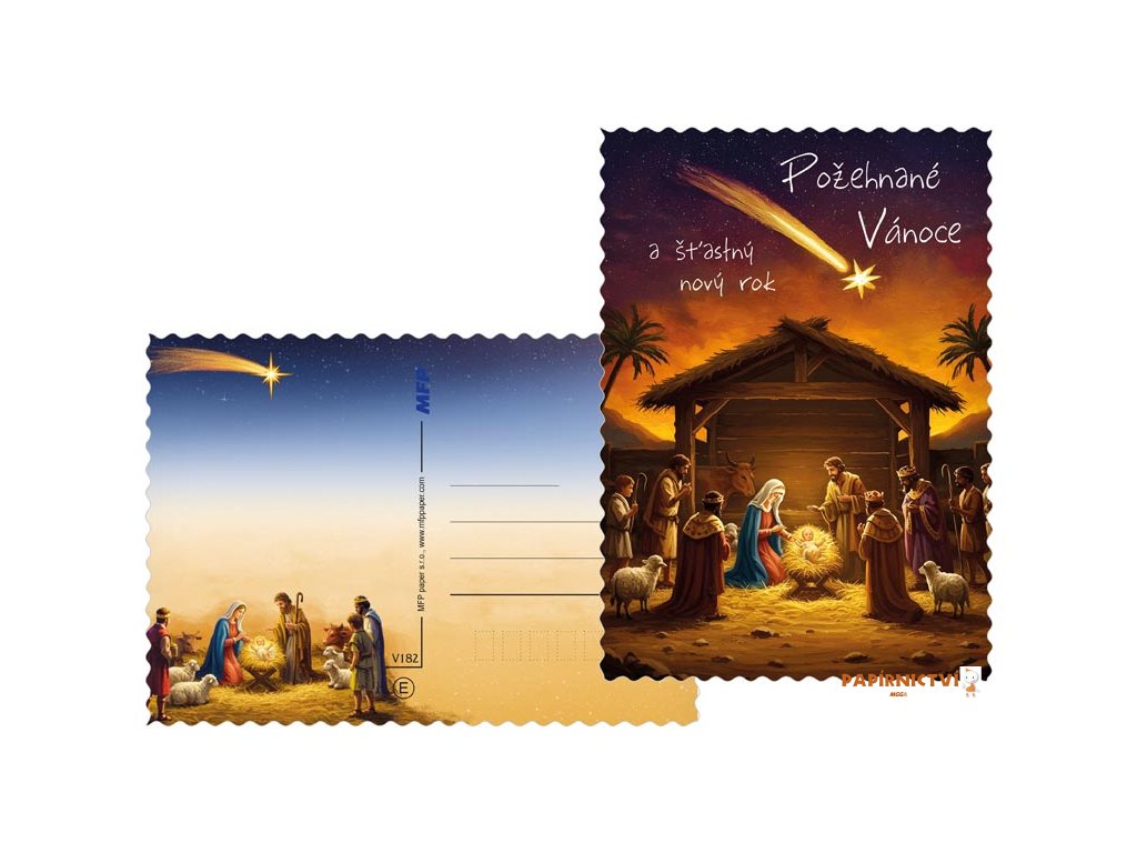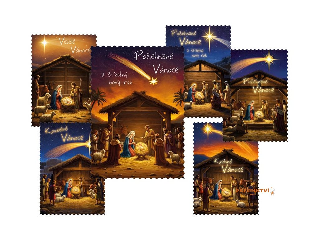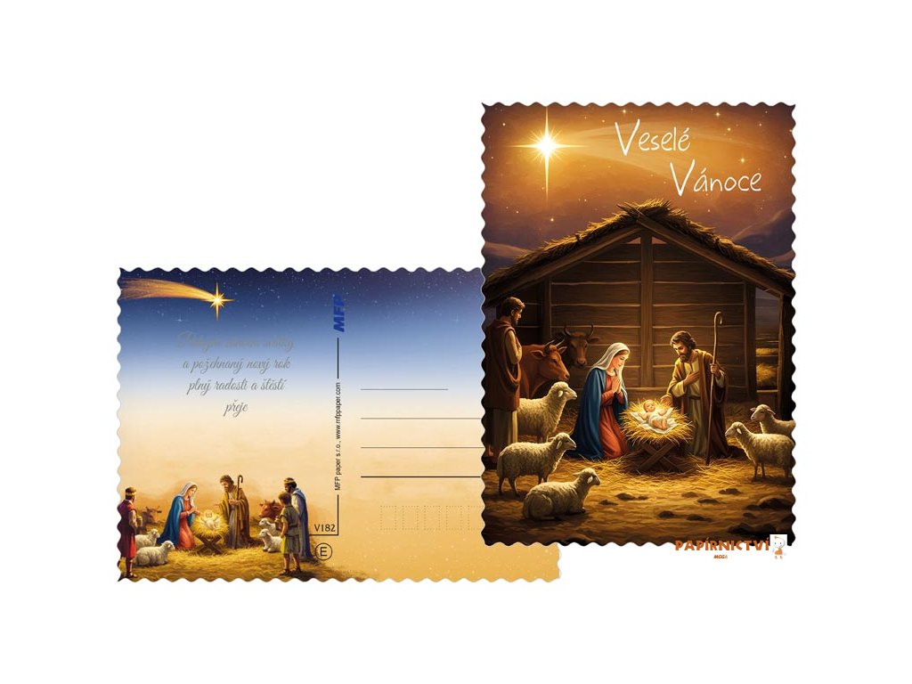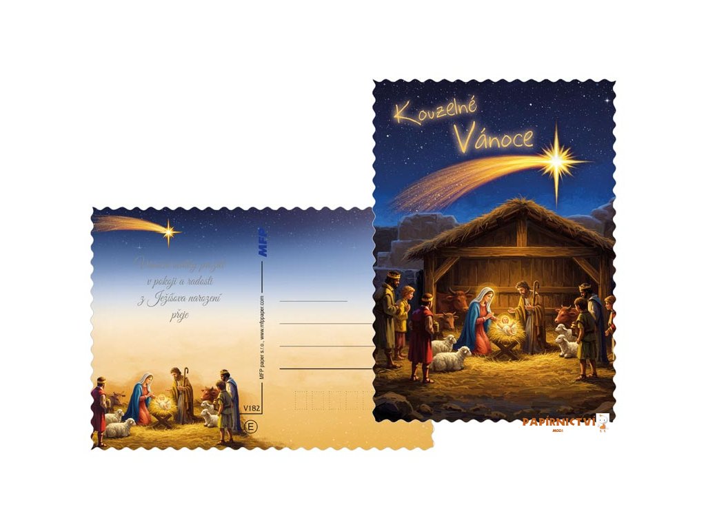 Veselé a Požehnané Vánoce!Pošlete svým blízkým tradiční vánoční pohlednici s krásným motivem Betlémské noci. Na pohlednicích najdete česká vánoční přání jako „Veselé Vánoce“, „Požehnané Vánoce“, „Kouzelné Vánoce“ a další.