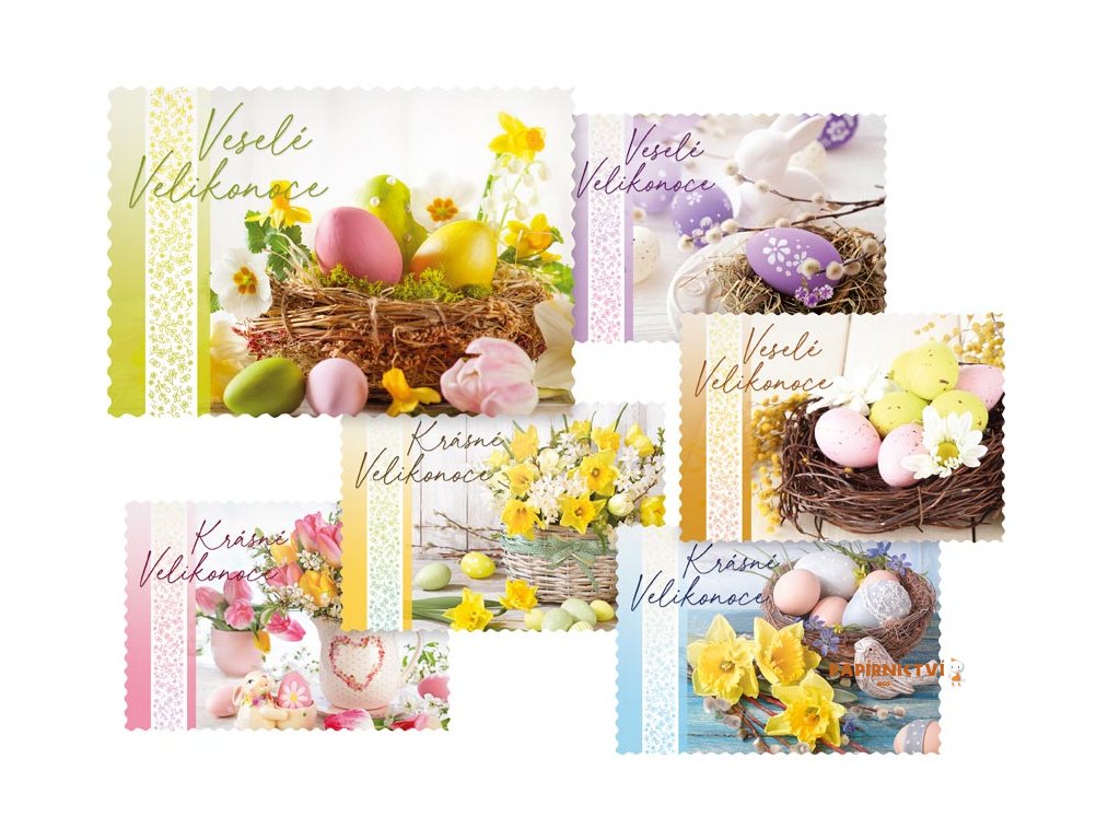 Pohlednice s velikonočním motivem. Text na zadní straně obsahují 4 pohlednice z 6.