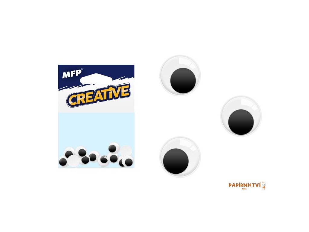 Pohyblivé nalepovací oči o průměru 1,5 cm. Oči mají pohyblivou přední část, slouží k výtvarným účelům (dotvoření postav lidí, zvířat).BALENÍ OBSAHUJE: