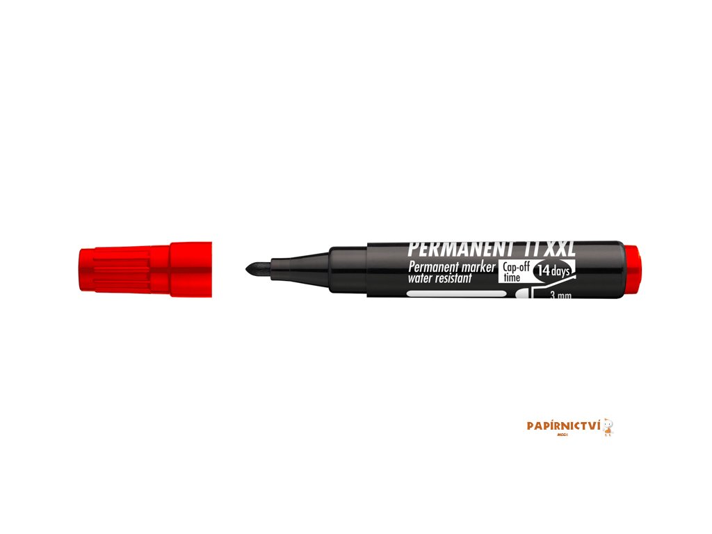 Popisovac 11XXL naplnený permanentním inkoustem na bázi lihu, který je vhodný pro popis prusvitných folií, skla, umelé hmoty, dreva a kovu. Nepruhledný inkoust. Nesmazatelný a vodeodolný. Šíre stopy 3mm (kulatý hrot). Vydrží až 14 dní otevrený bez vícka.Doplňkové parametry