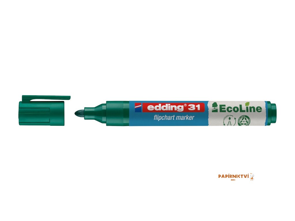 Popisovac na flipchart Edding 32 EcoLine, cerný. Ekologický popisovac z rady EcoLine se seríznutým hrotem o šíri 1–5 mm je ideální pro psaní na flipchartový a prezentacní papír. Je vyroben z více než 90 % recyklovaného plastu, rychleschnoucí, odolný vuci svetlu a doplnitelný inkoustem (Edding FTK 25). Díky technologii „cap-off“ nevyschne ani po nekolika týdnech bez vícka. Dostupný je v cerné, cervené, modré a zelené barve.Doplňkové parametry