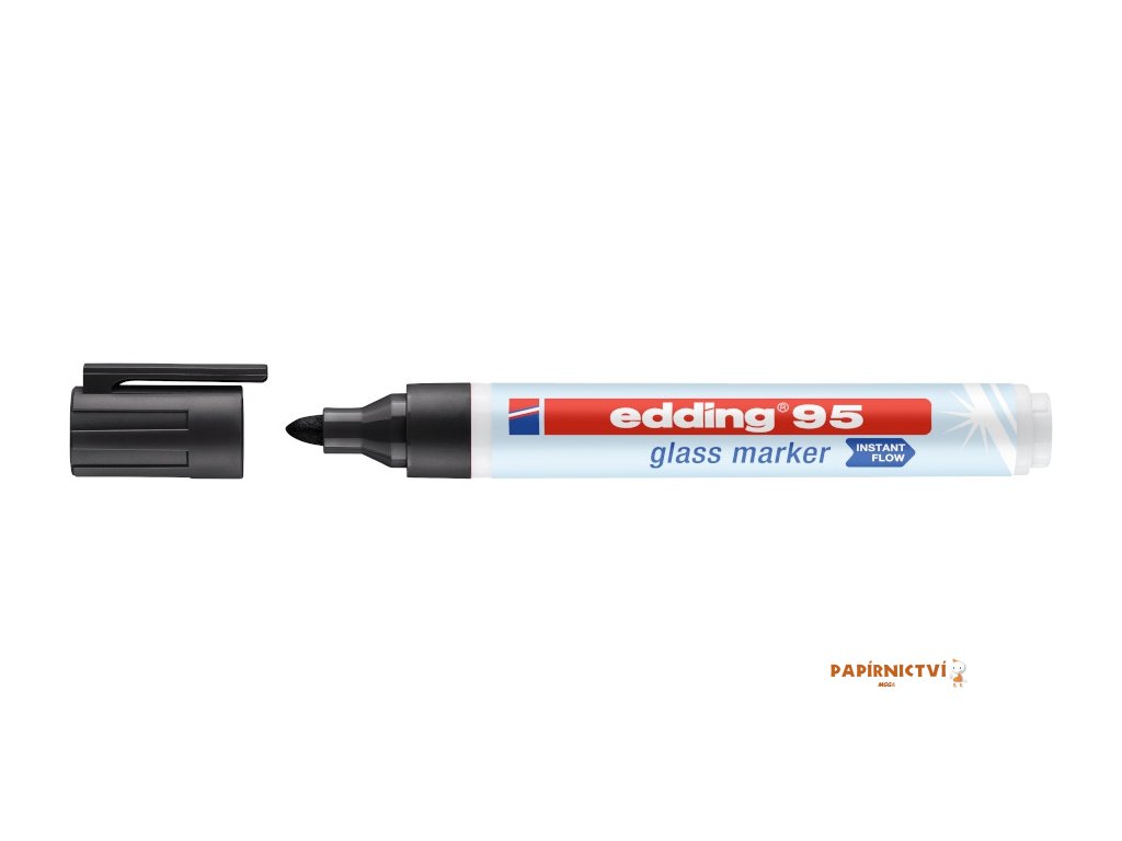 Popisovac na všechny sklenené povrchy. Vynikající krycí schopnost - zárivé barvy zajistí, že je stopa i na barevném skle dobre viditelná, inkoust je rychleschnoucí a nezanechává žádný mastný film. Popisovac využijete na sklo, sklenené tabule, zrcadla i na bílé tabule. Praktickou vlastností je smazatelnost stopy zasucha - není nutné používat vlhký hadr. Popisovac je ihned použitelný - stací sejmout vícko a psát. Kulatý hrot. Šíre hrotu 1,5-3 mm.Doplňkové parametry