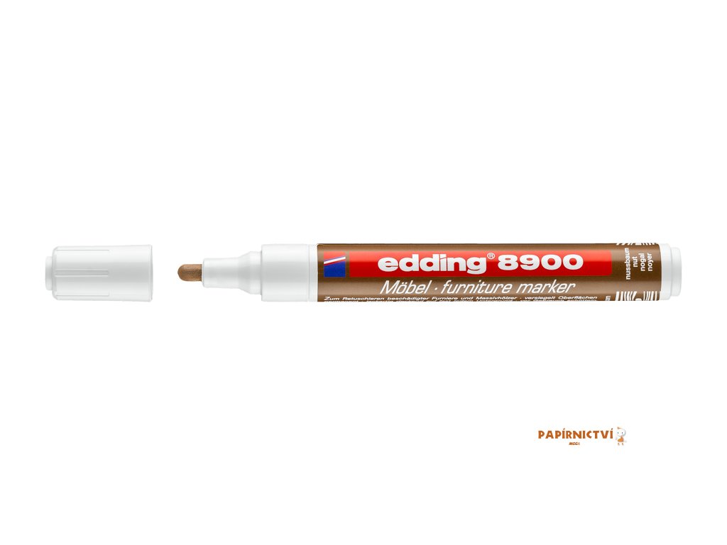 Popisovac EDDING 8900 na nábytek je korecní fix, který snadno pomuže zamaskaovat škrábance na nábytku. Vhodný pro menší rýhy a oderky. Popisovac je odolný vuci vetšine bežných cisticích prostredku pro domácnost. Bez zápachu - bez pridaného xylenu a toluenu. Pro hlubší rýhy doporucujeme použít sadu opravných vosku Edding 8901. Šíre stopy hrotu je 1,5-2 mm. Permanentní a odolný vuci rozmazání a je rychleschnoucí.Doplňkové parametry